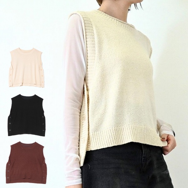 ミニループニットサイドボタンベスト