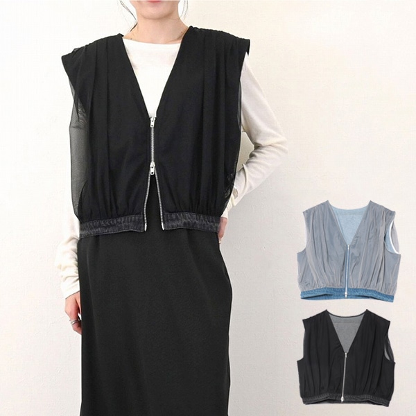 デニム×チュールWジップベスト