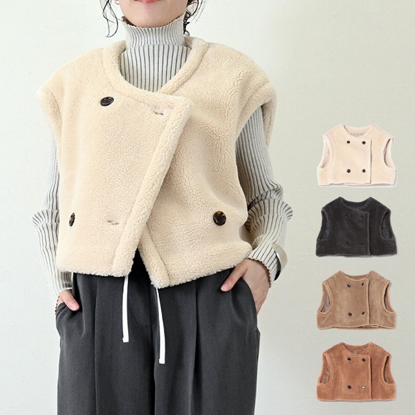 ボアノーカラーショートベスト