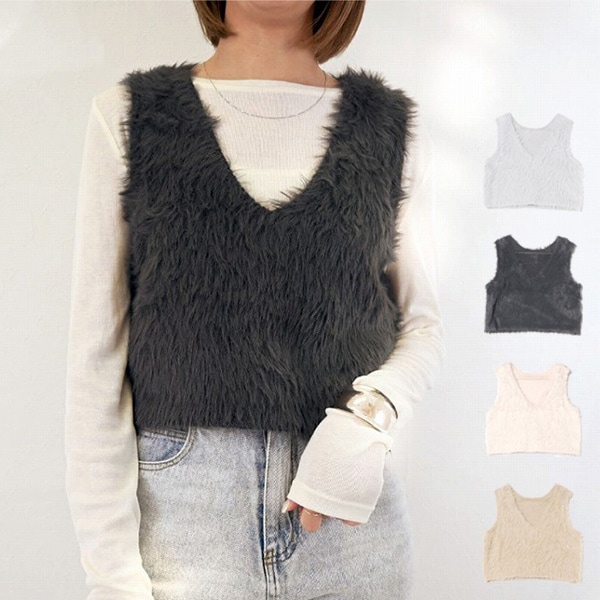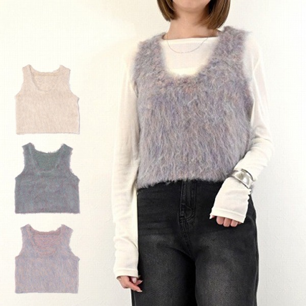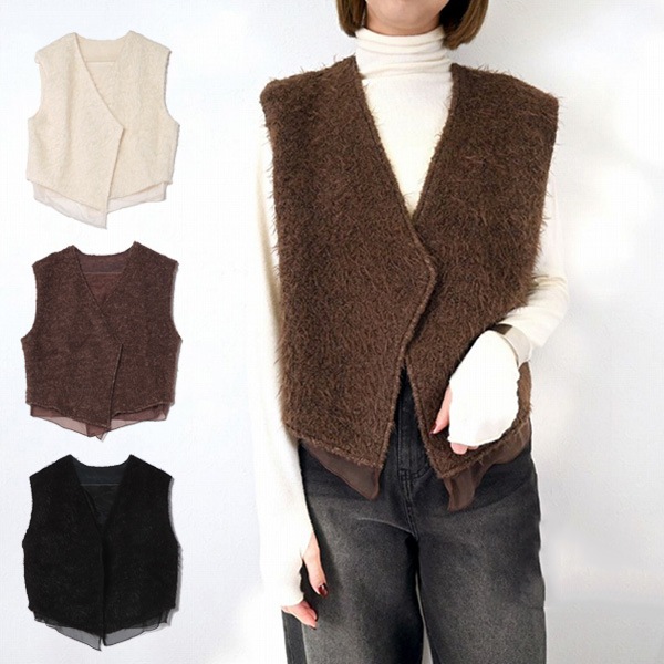 ミックスシャギーUネックベスト