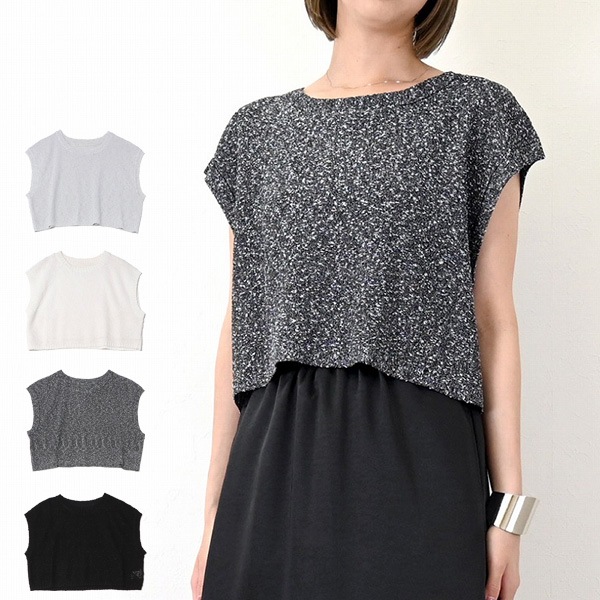 ネップヤーンニットクロップドベスト