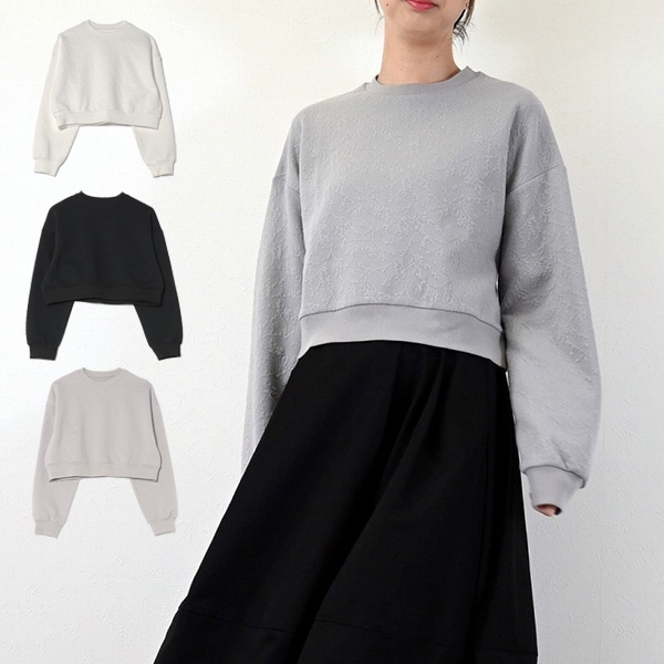 花柄ふくれジャガードカットソークロップドプルオーバー