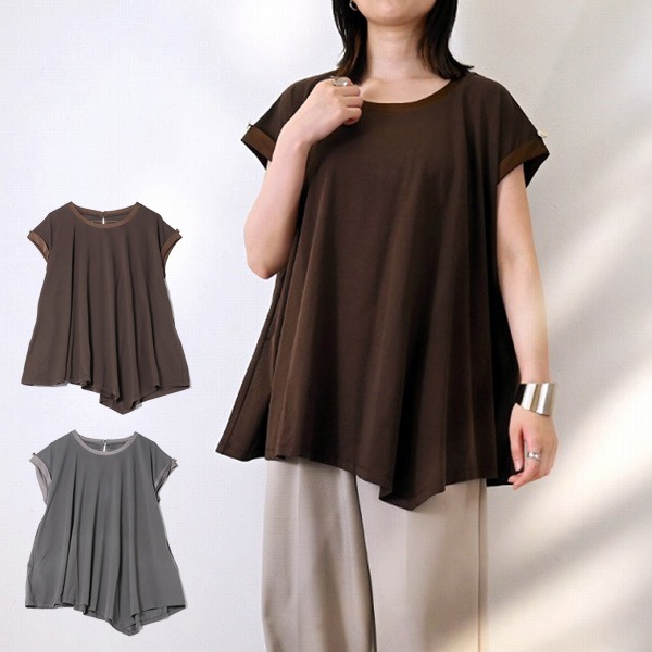 サテン部分使いアシメチュニックTシャツ