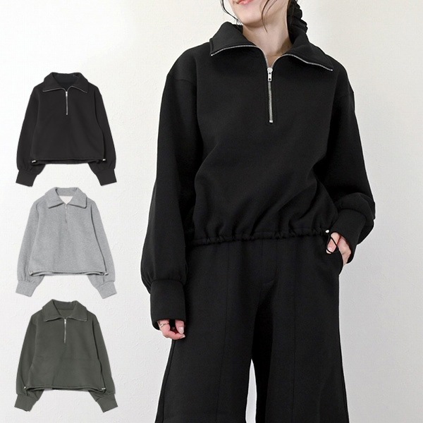 裏起毛ハーフジップトップス