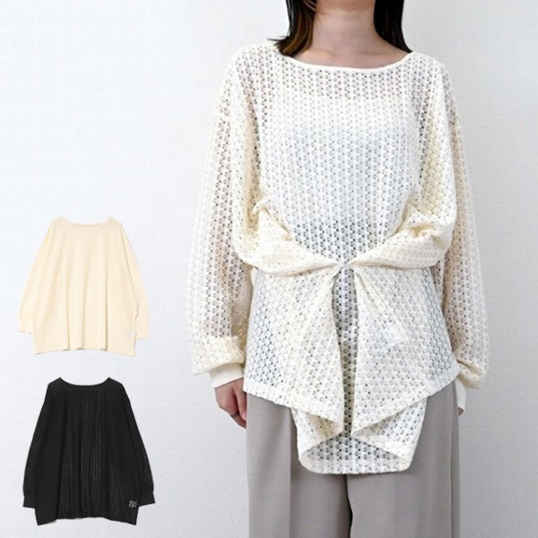 かぎ針調メッシュ2WAYオーバーロンT