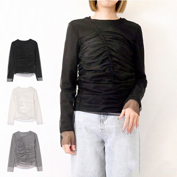 シアー楊柳ウェーブギャザートップス
