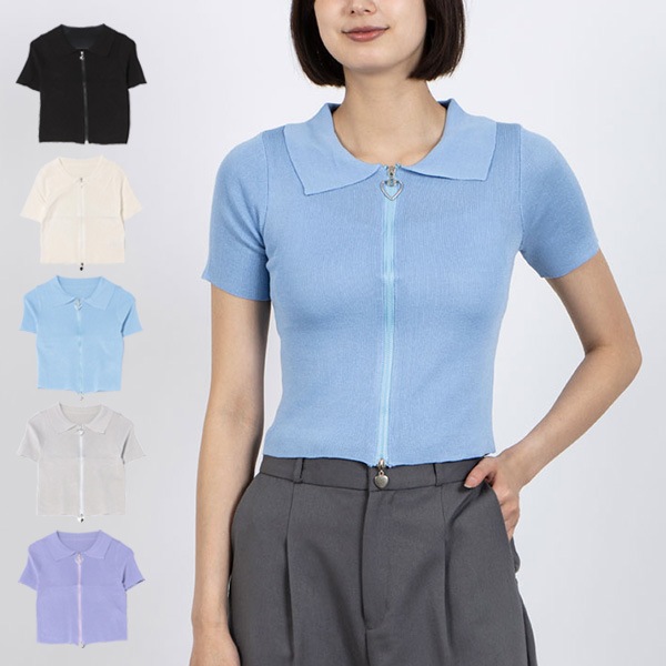フェイクネックレス付きジャガードボトルネックニットトップス