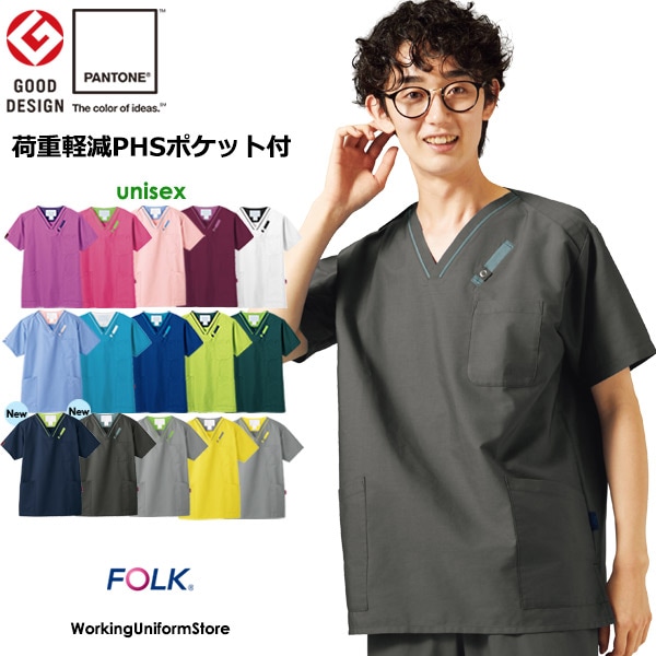 医療白衣 パントン 男女兼用PHSポケット付スクラブ 7042SC スクラブポプリン フォーク