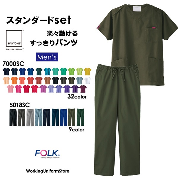 医療白衣 パントンセット 男性用スクラブ7000SC ストレートパンツ5018SC スクラブポプリン フォーク