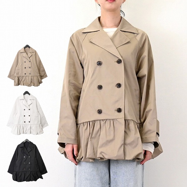 レディース ロング丈 トレンチコート テーラード コート アウター ウエストマーク ゆったり ベーシック シルエット 体型カバー ...