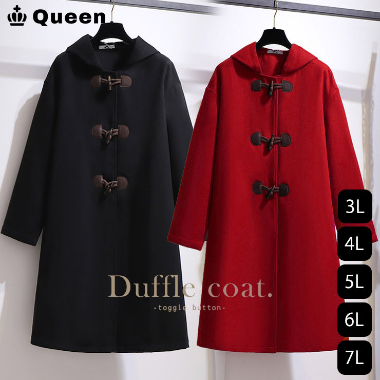 大きいサイズ レディース ダッフルコート 黒 薄手 ロング丈 フードつき 3L 4L 5L 6L 7L (61517)