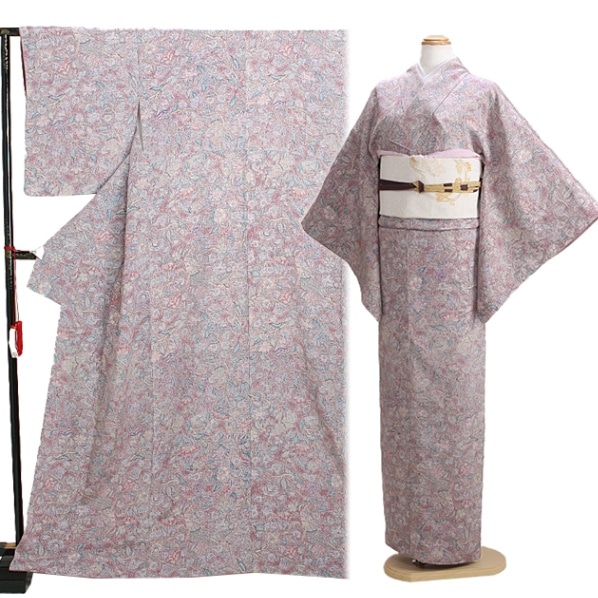 色無地 レンタル 袷 10月~5月向け 高級正絹 うす紫色 着物 一つ紋 お宮参り FDD0050
