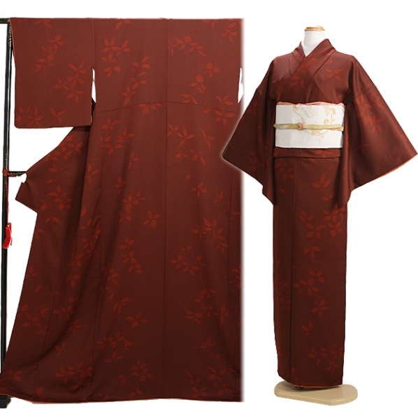 色無地 レンタル 袷 10月~5月向け あずき色 着物 お宮参り FDD0017