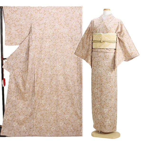 小紋 レンタル 袷 10月~5月向け 高級正絹 ベージュ色 お稽古 観劇 FCT0061