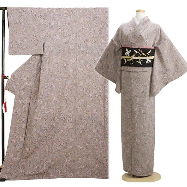 色無地 レンタル 袷 10月~5月向け 高級正絹 グレー色 着物 一つ紋 お宮参り FDD0055