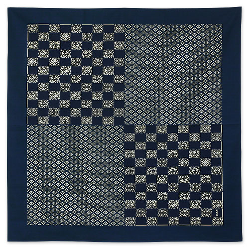 いせ辰 綿風呂敷 三巾 角菊小紋 紺