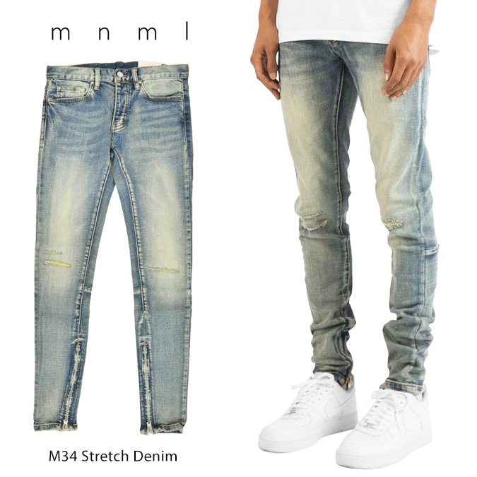 mnml ミニマル M34 Stretch Denim M34デニム ジーンズ デニムパンツ ストレッチ ダメージ加工 スリム ス...