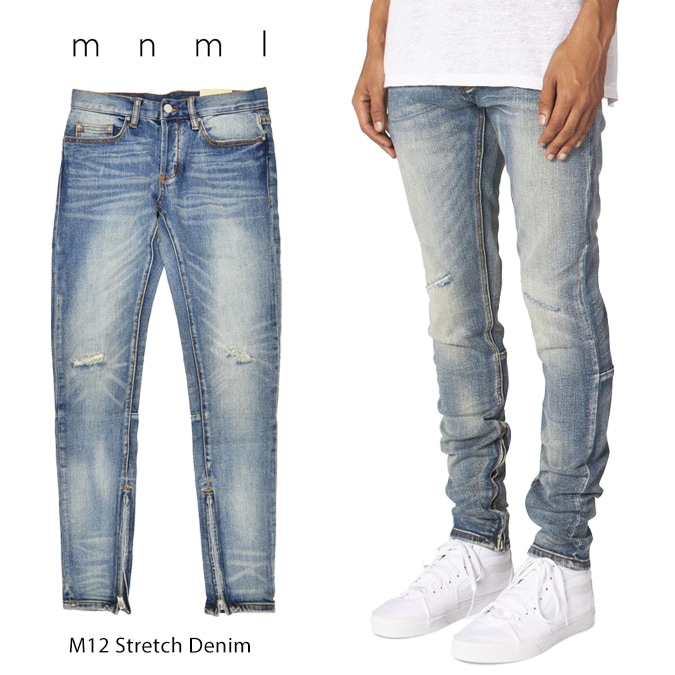 mnml ミニマル M12 Stretch Denim M12デニム ジーンズ デニムパンツ ストレッチ ダメージ加工 スリム ス...