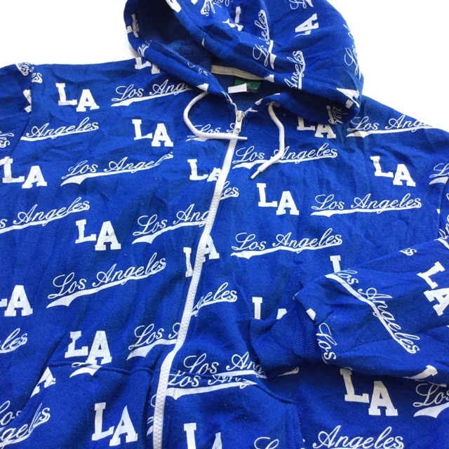 LA Los Angeles ロサンゼルス アメリカ古着 ジップアップパーカー フード 送料無料 メンズ S/青・ブルー フルプリ...