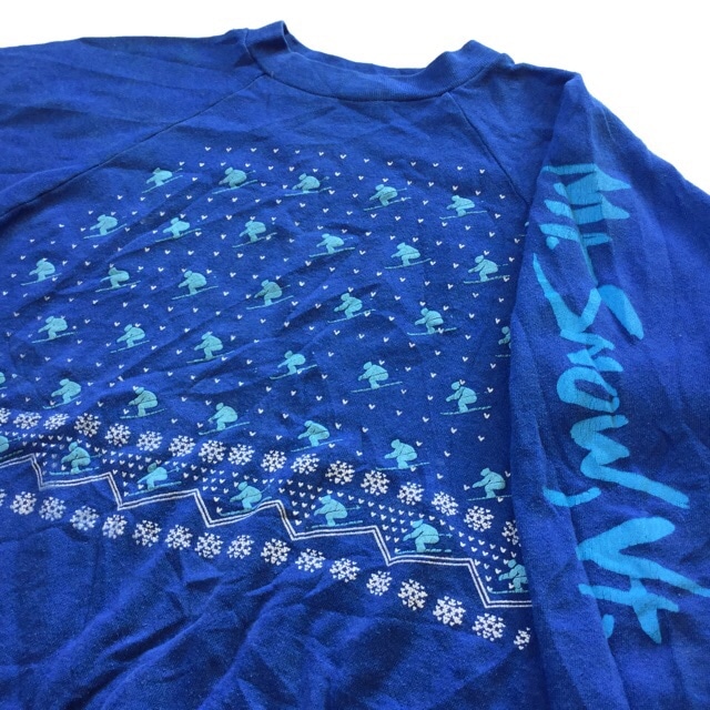 スキープリントスウェット オールド アメリカ古着 トレーナー 送料無料 メンズ M-L/青・ブルー 雪柄 スノーフレーク アメカジ...
