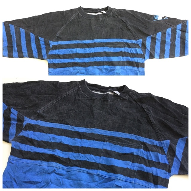 PERMIT アメリカ直輸入 長袖スウェット トレーナー 送料無料 メンズ L/黒x青 ストライプ ボーダー 切替し アメカジ ポ...