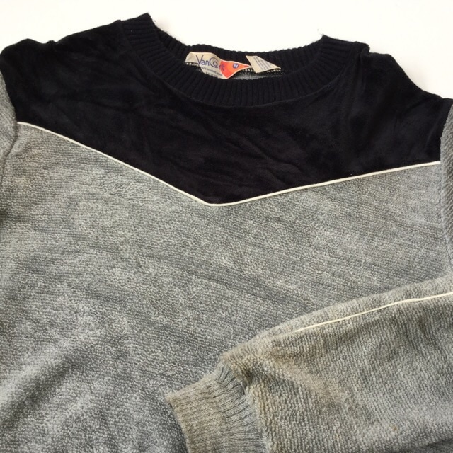 VanCort ベロアxパイル スウェット アメリカ古着 送料無料 メンズ M/黒xグレー ベルベット パイピング 無地 アメカジ...