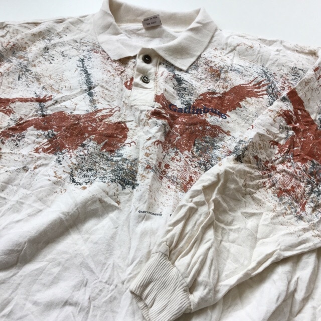 GATLINBURG 長袖シャツ コットンスウェット 送料無料 メンズ L/生成x茶 長袖ポロシャツ ネイティヴ柄 MADE IN...