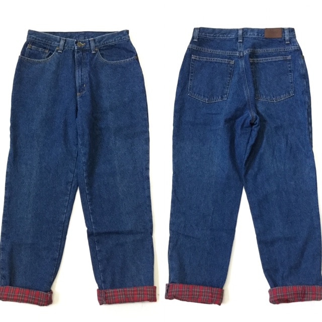 L.L.Bean DOUBLE L エルエルビーン チェックライナー付きデニムパンツ W74cm/濃紺 RELAXED FIT ア...