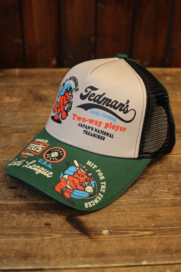 エフ商会 TEDMAN(テッドマン) TDC-9000デビルリーグ メッシュキャップ グリーン/ベージュ