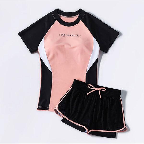 レディース スポーティ フィットネス水着 上下セット 半袖 ショートパンツ セパレート スイムウェア 速乾性 細見え 着痩せ マリ...