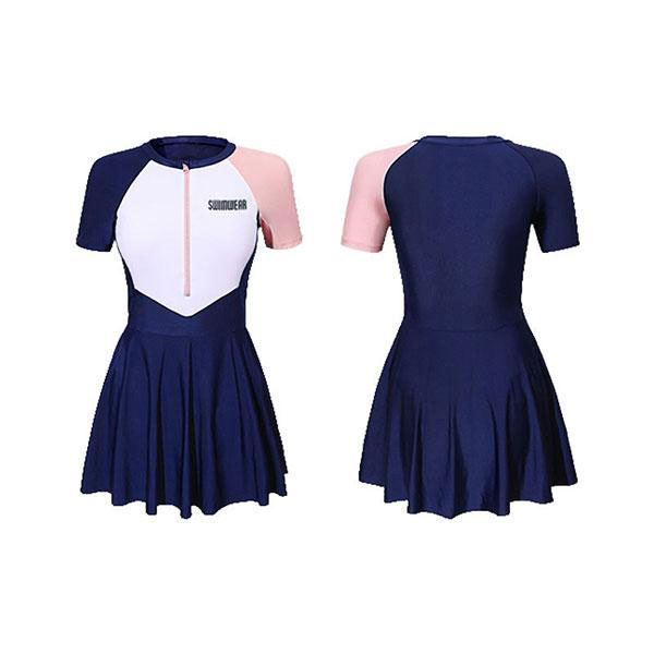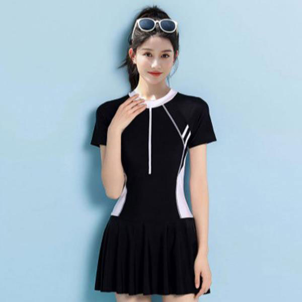 レディース フロントジップ ワンピースタイプ 水着 半袖 スイムウェア ダブルパッド付き UVカット 日焼け防止 フィットネス マ...