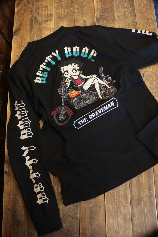 The BRAVE-MAN×BETTY BOOP ベティ長袖TシャツBBB-2445 天竺ロンTee 刺繍 ブラック