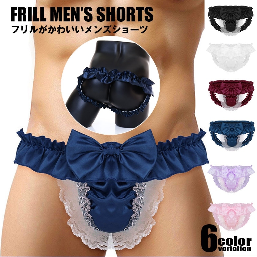 メンズショーツ 男性用 Oバック 立体フロント ショーツ レース 下着 インナー 女装 アンダーウェア ふりふりフリル 大きな...