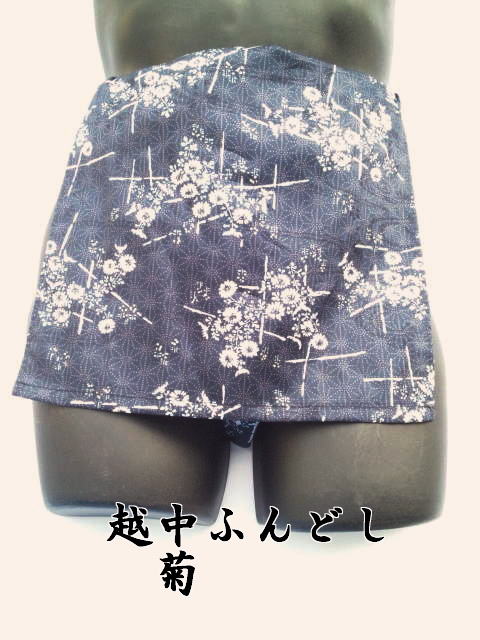 越中ふんどし 和柄褌 菊柄【紺色】日本製 綿100%
