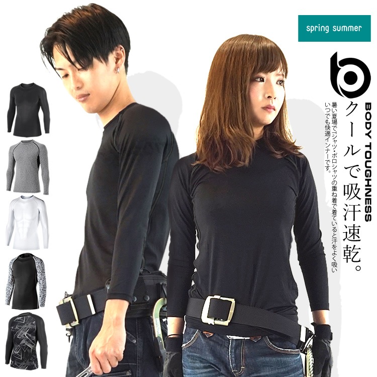 コンプレッション 春夏用 クルーネック 長袖 メンズ&レディース ボディータフネス 冷感 クールインナー 吸汗速乾 JW-623 ...