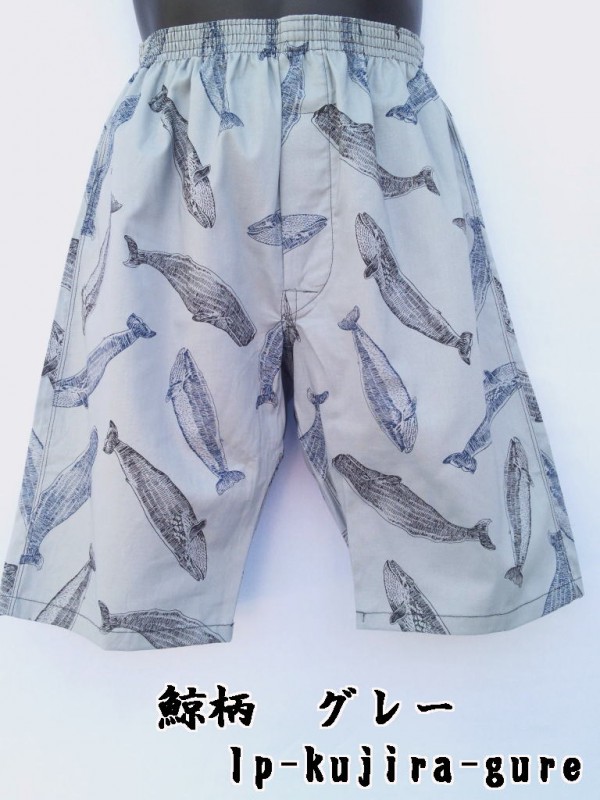 ロングトランクス 鯨柄【グレー】M~L 日本製 綿100%【後ろポケット付き】