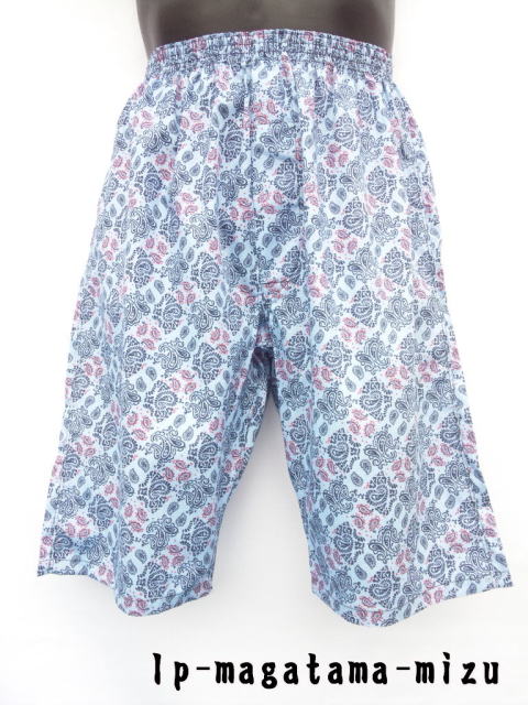 ロングトランクス 勾玉柄【水色】M~L 日本製 綿100%