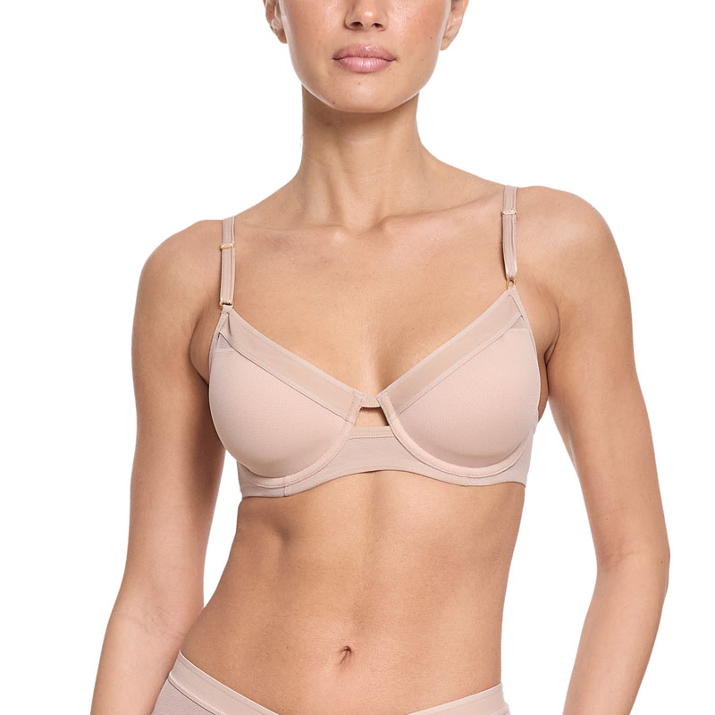 アンラインド メッシュ アンダーワイヤー ブラ (チャイ)