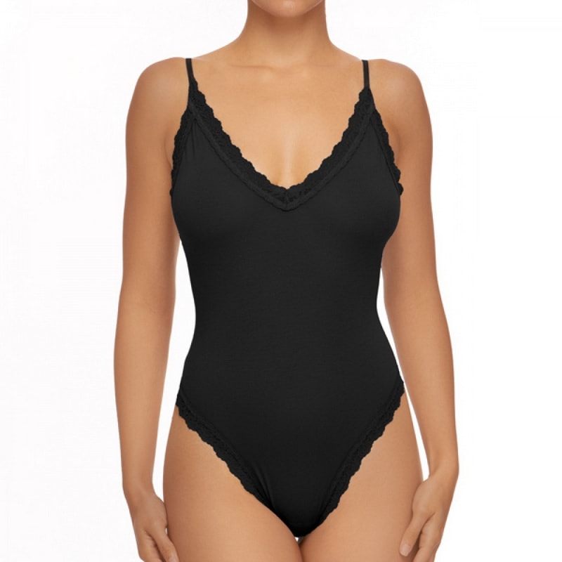 シグニチャー レース タンガ バック ボディースーツ (ブラック)