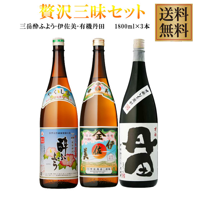 【送料無料】贅沢三昧セット(伊佐美・三岳酔ふよう・有機丹田) 25度 1800ml×3本