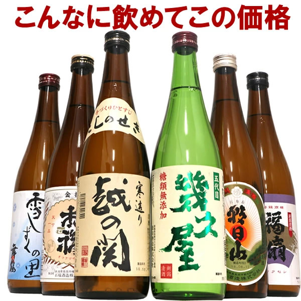 日本酒 飲み比べセット 720ml×6本 四合瓶(朝日山、福扇、幾久屋、雪しずくの里、越の関、お福正宗)