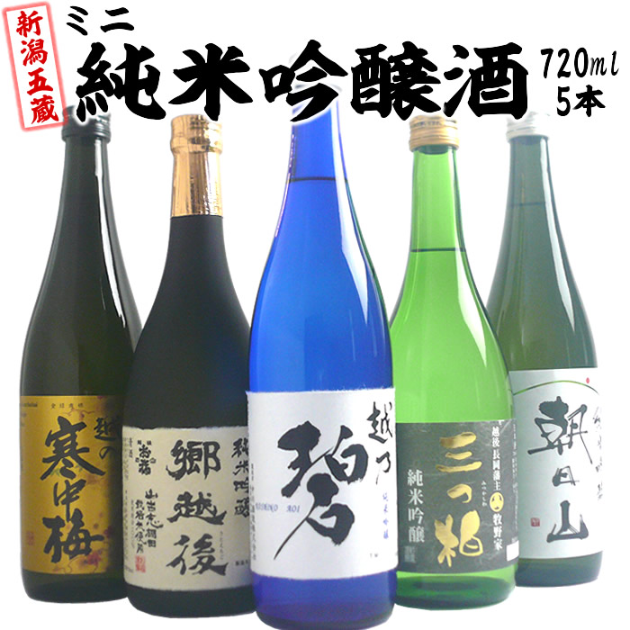 (終売)日本酒 純米吟醸 飲み比べセット 720ml×5本 (越乃碧、郷越後、三つ柏、寒中梅、朝日山)【送料無料】