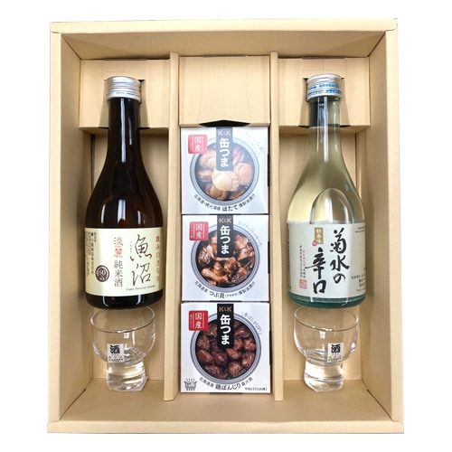 ラッピング付 専用グラス付日本酒2本 缶つま2個セット★[sake-glass](L)(80-0)