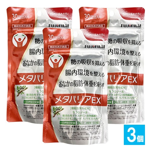 訳あり【機能性表示食品】メタバリアEX 240粒×3個セット 【FUJIFILM】糖の吸収を抑える 腸内環境を整える おなかの脂肪...