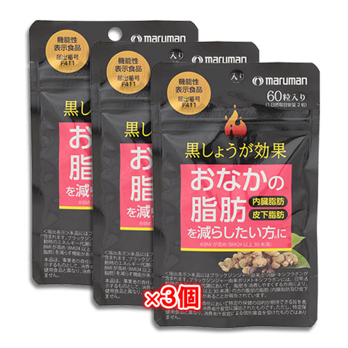 【機能性表示食品】黒しょうが効果 60粒(30日分)×3個セット 【マルマン maruman】おなかの脂肪(内臓脂肪、皮下脂肪)を...