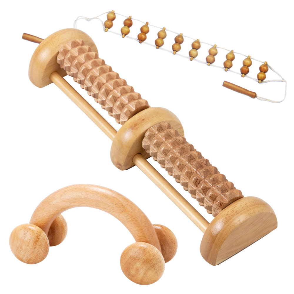 木製マッサージ3点セット 4輪マッサージ・ボディーマッサージャー・足用マッサージャー Wooden massager set