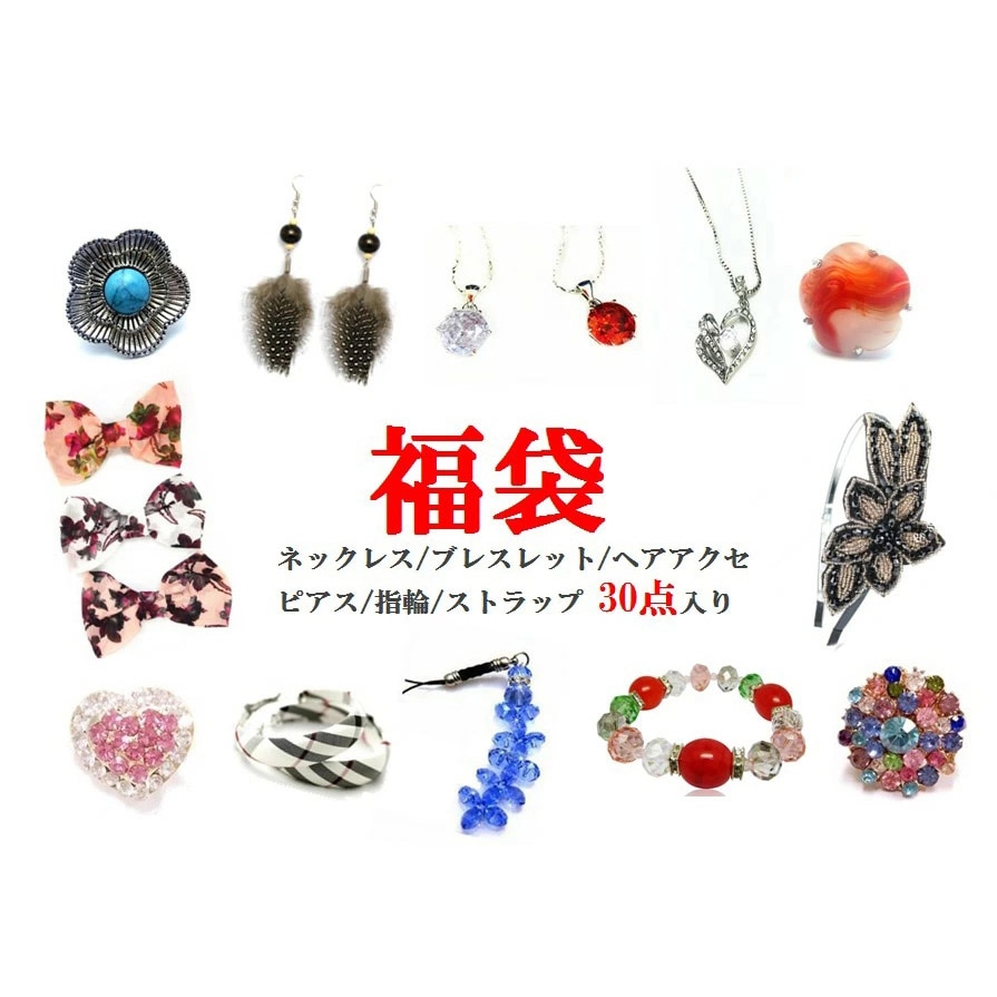 指輪 ピアス ネックレス ブレスレット ヘアアクセサリー ストラップ 30点入り 福袋 \\6980 アクセサリー ストーン キラ...