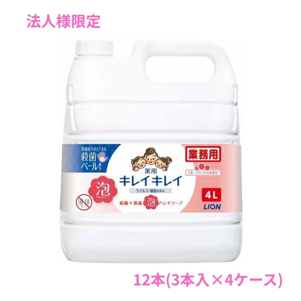 【法人様限定】ライオン キレイキレイ薬用泡ハンドソープ 4L×3本入×4ケースロット【取り寄せ商品・代引き不可・時間指定不可・沖縄...