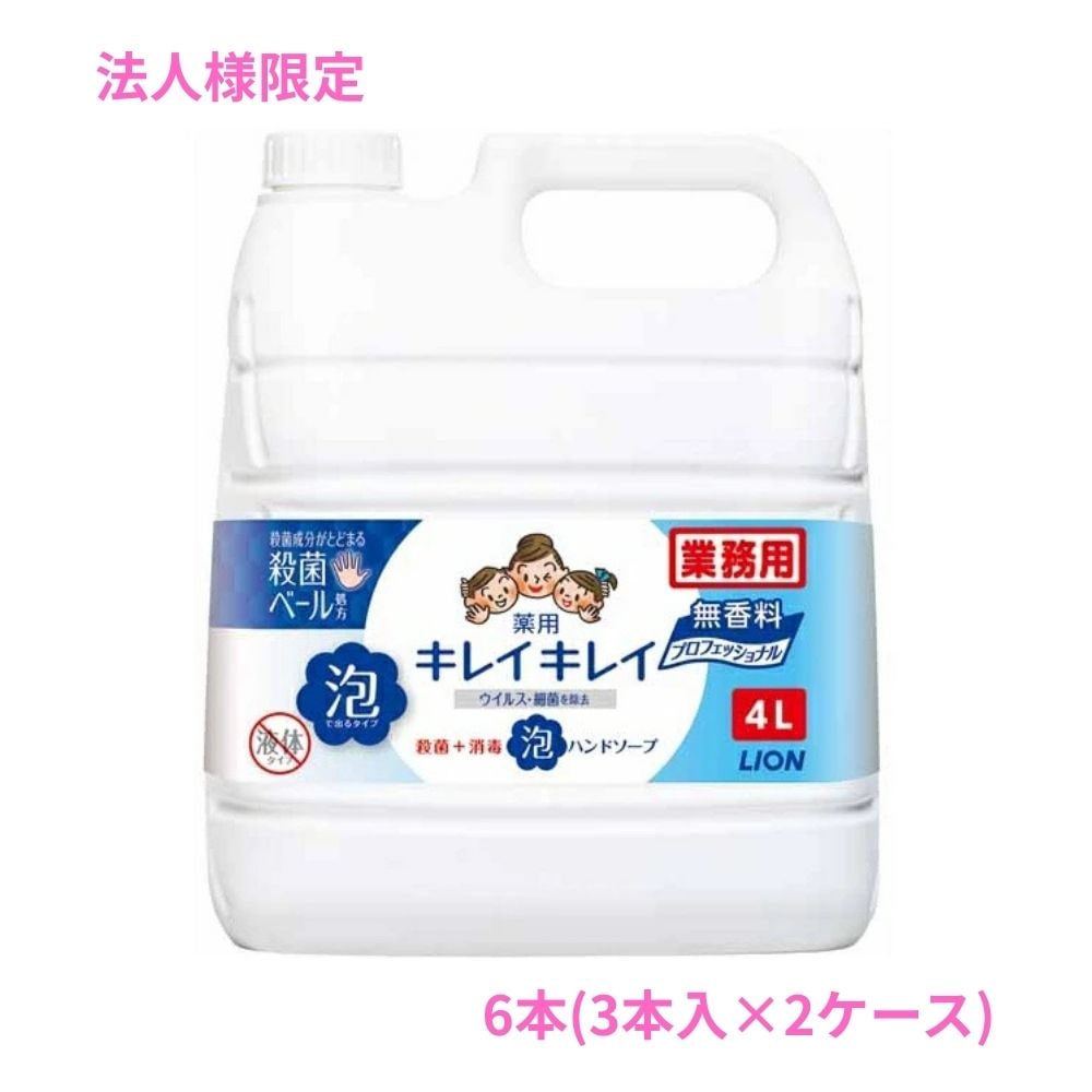 【法人様限定】ライオン キレイキレイ薬用泡ハンドソープ 無香料 4L×3本入×2ケースロット【取り寄せ商品・代引き不可・時間指定不...
