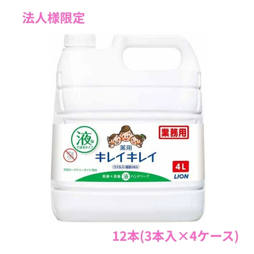 【法人様限定】ライオン キレイキレイ薬用液体ハンドソープ 4L×3本入×4ケースロット【取り寄せ商品・代引き不可・時間指定不可・沖...